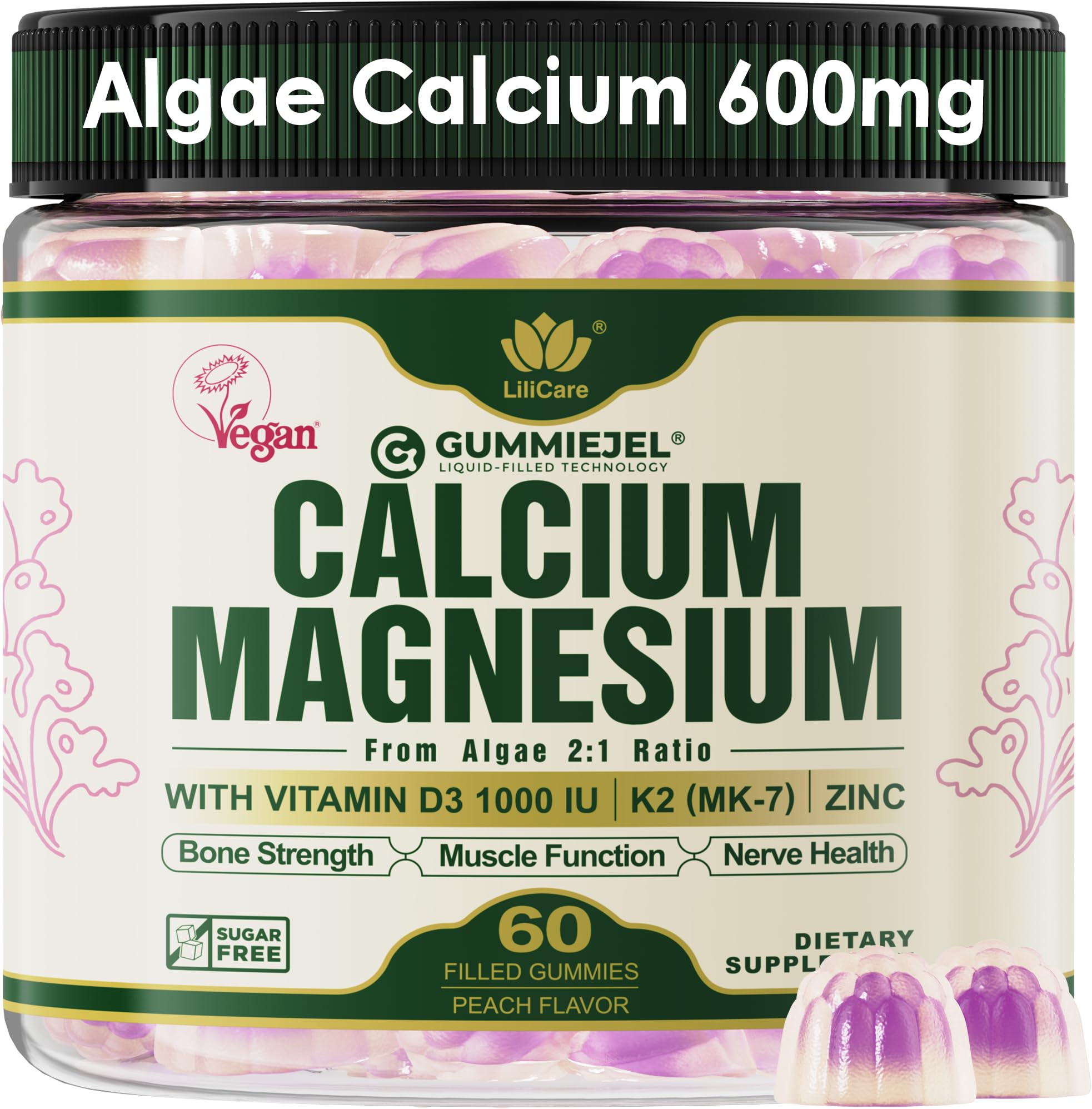 LILICARE's algae calcium gummies pack a punch with their high bioavailability and easy-to-absorb, marine-derived calcium.