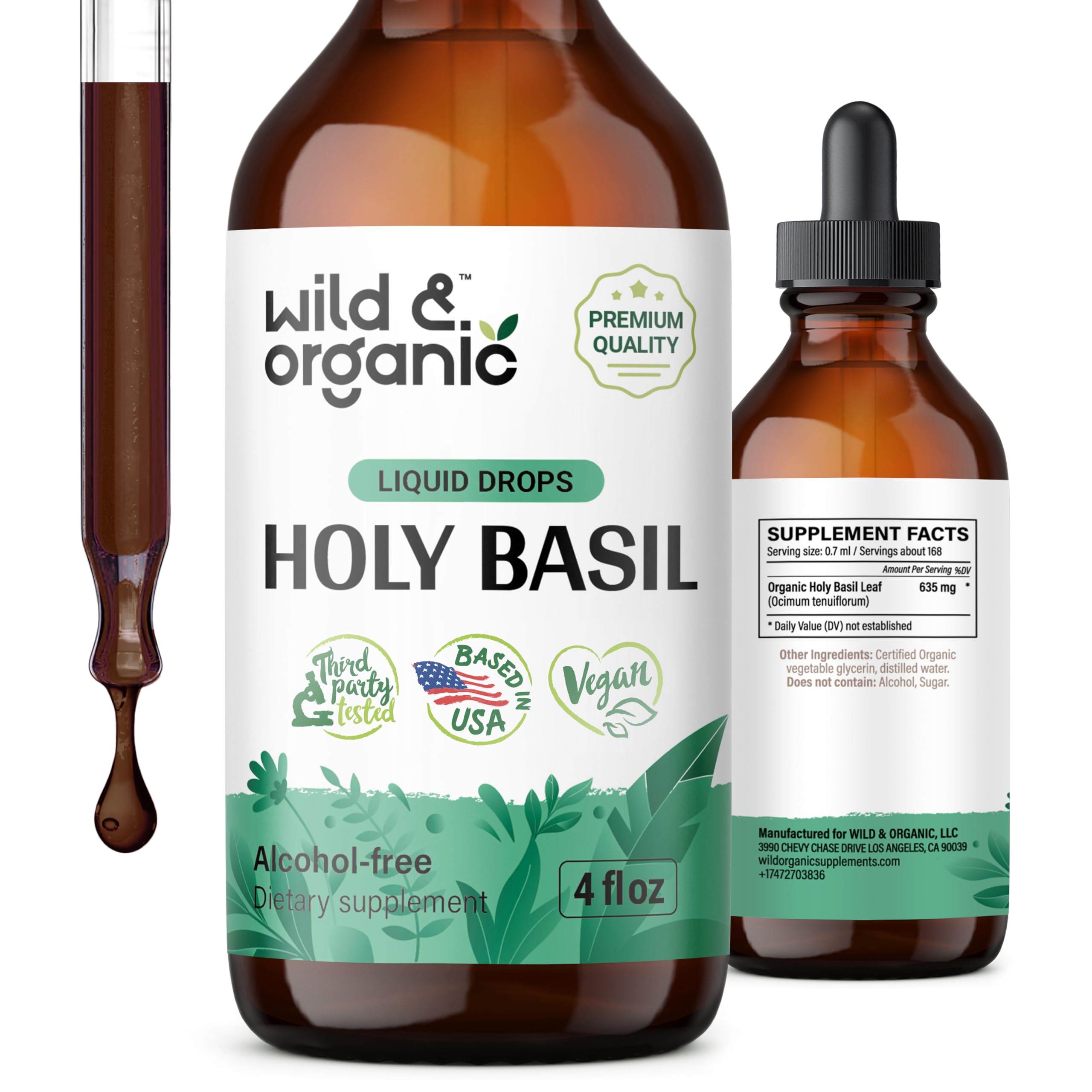 Wild & Organic’s holy basil tincture offers 635 mg of potent extract per serving, making it a solid choice for relaxation and mood support.