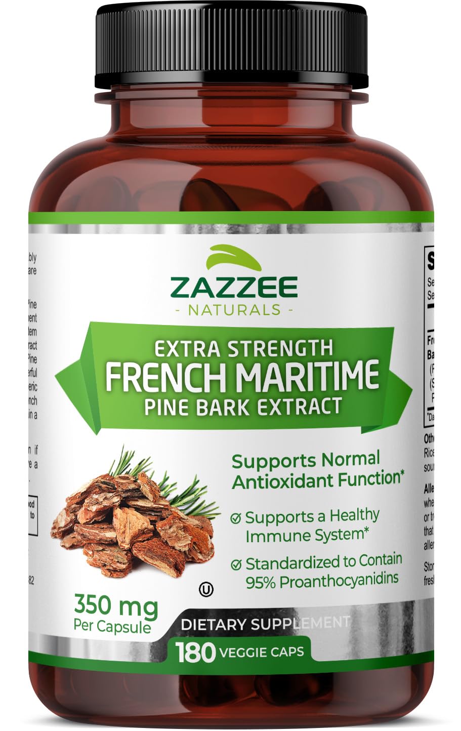 Zazzee Naturals offers an outstanding value with 180 capsules, each packed with a potent 350 mg of French Maritime Pine Bark Extract—equating to a solid six months' supply.
